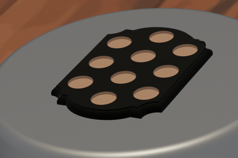 Display plinth featuring 6 round slots at 40.5 mm diameter.