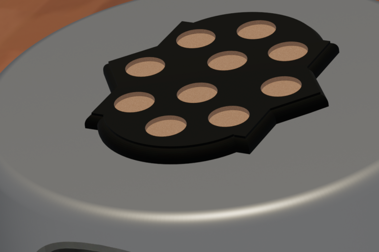 Display plinth featuring 8 round slots at 50.5 mm diameter.