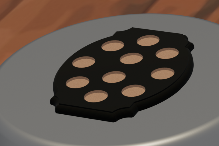 Display plinth featuring 6 round slots at 40.5 mm diameter.