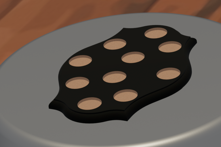 Display plinth featuring 6 round slots at 40.5 mm diameter.
